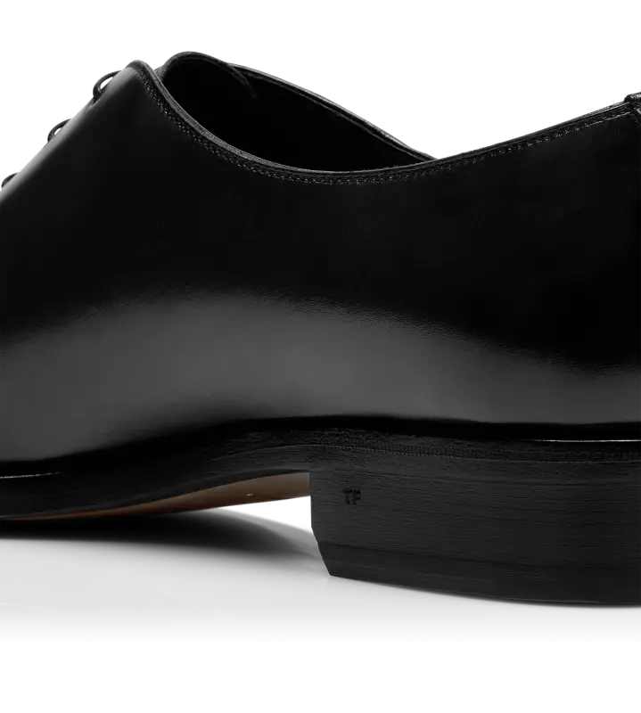 Burnished leather shoes by TOM FORD are polished, rich, depth-enhancing, giving a classic model a distinguished look and they nod to a patina-of-time look. Part of a formal attire, the wholecut lace up is an example of a master shoemaker’s technique, cut from a single piece of leather, requiring precision and resulting in a seamless silhouette.
